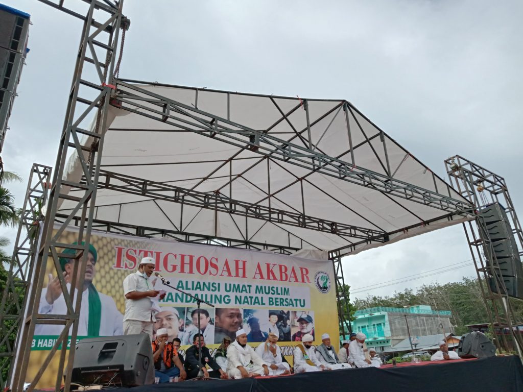 Panyabungan, StArtNews-Masyarakat yang tergabung dalam Aliansi Umat Muslim Madina Bersatu menggelar istighosah, dzikir akbar dan doa bersama di Lapangan Aek Godang, Jumat (18/12).