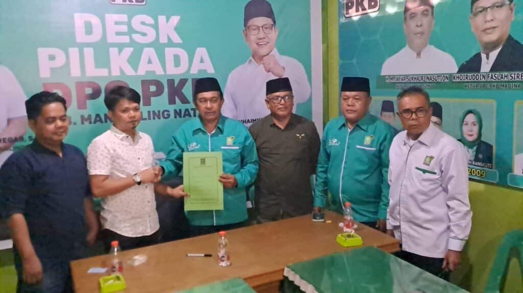 Panyabungan, StartNews –Hari pertama pembukaan penjaringan bakal calon kepala daerah (bacakada) DPC Partai Kebangkitan Bangsa (PKB) Mandailing Natal (Madina), tim Atika Azmi Utammi Nasution mengambil formulir pendaftaran di Kantor DPC PKB Madina, Panyabungan, Kamis (25/4/2024).