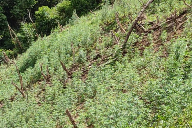Setelah melalui perjalanan sekitar 4 jam, tim gabungan menemukan sekitar 2000 batang ganja tang ditanam dalam ladang seluas 2 hektare. Tak jauh dari ladang tersebut tim menemukan ladang lainnya yang diperkirakan seluas 3 hektare.