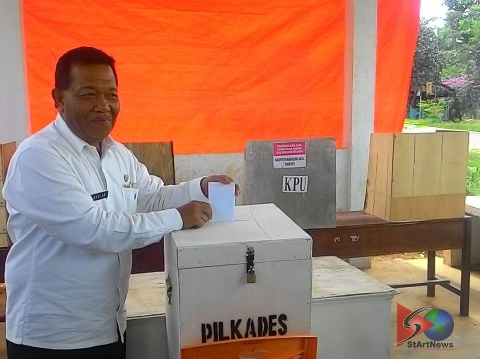 Panyabungan.StArtNews-Bupati Mandailing Natal Drs. Dahlan Hasan Nasution Rabu siang 30 November salurkan Hak pilihnya pada Pilkades di Desa Parbangunan, Kecamatan Panyabungan, Mandailing Natal. Beliau datang sendiri ke TPS yang yang tidak jauh dari Rumah Dinasnya di Aek Godang.