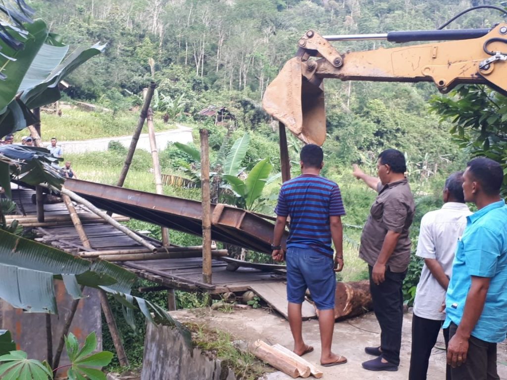Bupati Madina Drs Dahlan hasan nasution tinjau langsung perbaikan jembatan di Desa Bulu Soma, rabu (27/5/2020).