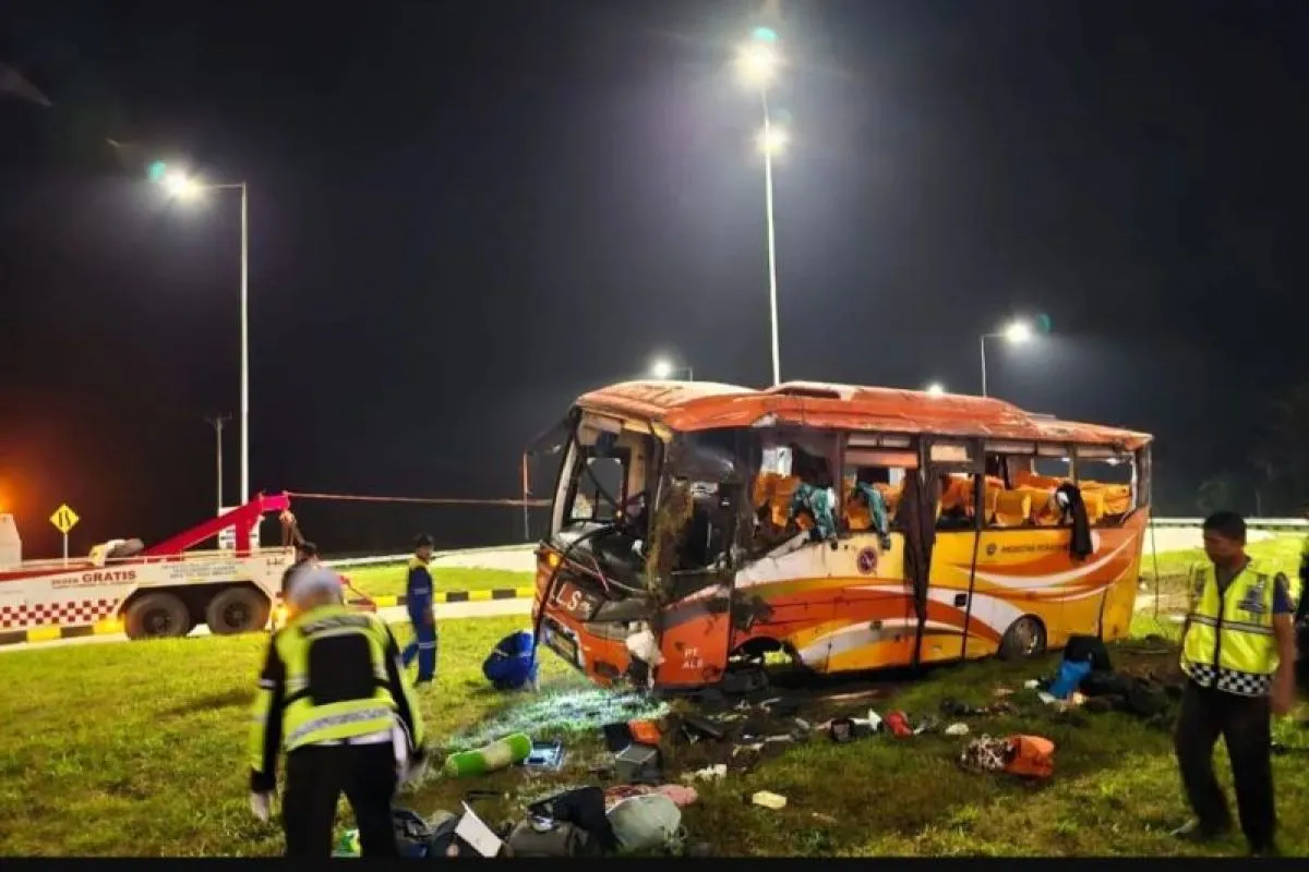 Namun, bus nahas tersebut mengalami kecelakaan tunggal ketika melintas di jalan Tol Padang-Sicincin, tepatnya di pintu keluar tol.