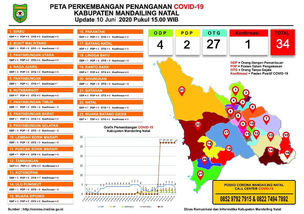 Panyabungan, StArtNews-Tim Gugus Tugas Penanganan (TGTP) Covid-19 kembali merilis data terbaru percepatan penanganan Covid-19 di Kabupaten Mandailing Natal per Rabu 10 Juni 2020.