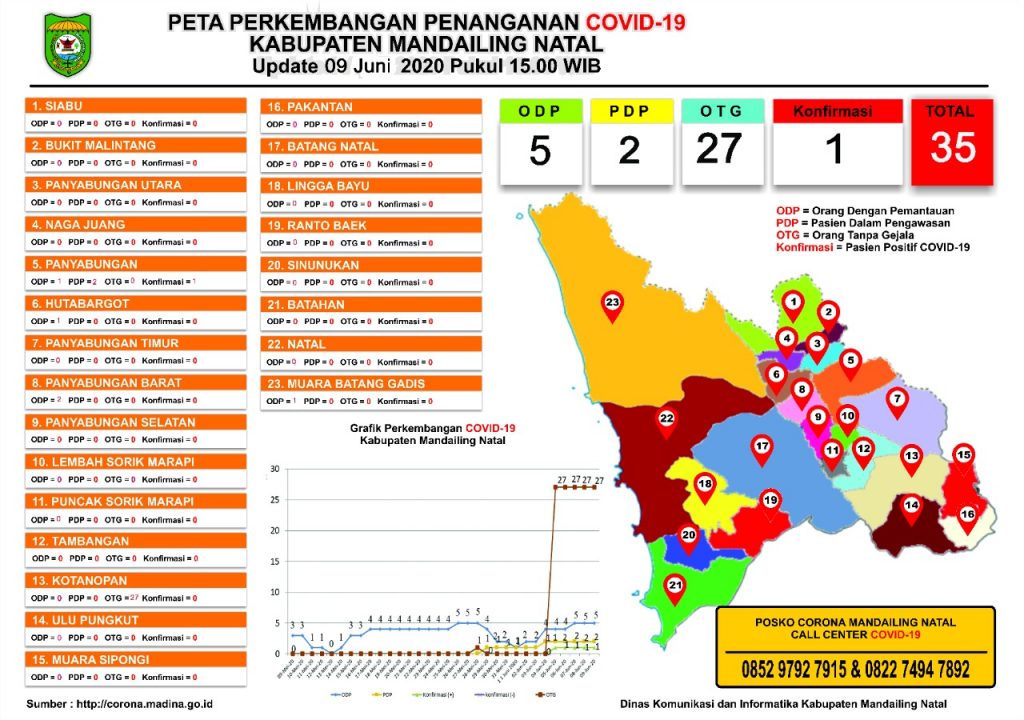 Panyabungan, StArtNews-Tim Gugus Tugas Penanganan (TGTP) Covid-19 Kabupaten Mandailing Natal (Madina) kembali merilis data terbaru per Selasa 9 Juni 2020.
