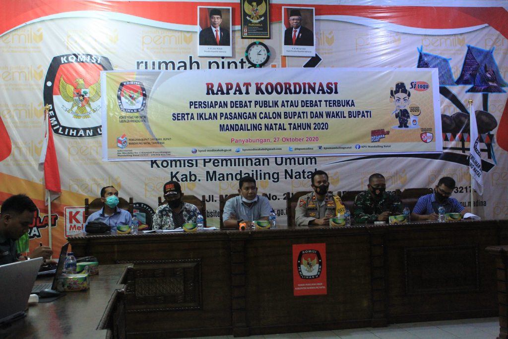 Hal itu disampaikan Ketua KPU Madina, Fadhillah Syarief pada Rapat Koordinasi Persiapan Debat Publik atau Debat Terbuka Serta Iklan Pasangan Calon Bupati dan Wakil Bupati Mandailing Natal Tahun 2020 di Aula KPU Madina, Kayu Jati, Panyabungan, Selasa (27/10).