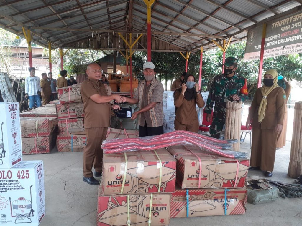 Bantuan tersebut diterima oleh 50 Kelompok Tani berupa, Cangkul, Parang, Garuk, Sorong. Sementara itu 14 kelompok tani menerima Handsprayer.