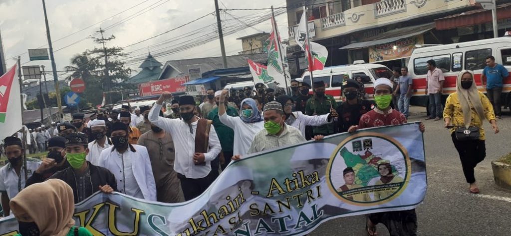 Pasangan Bakal Calon SUKA bersama ribuan simpatisan berjalan kaki menuju KPU Madina untuk mendaftarakan di Pilkada Madina.
