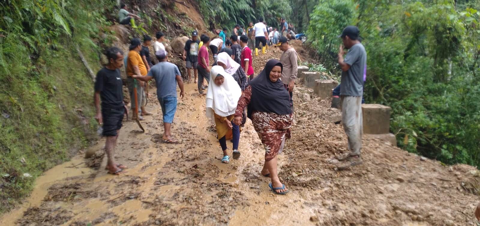 Peristiwa tanah longsor menutupi jalan menuju desa Ampung Julu terjadi pada pukul 22.30 wib.