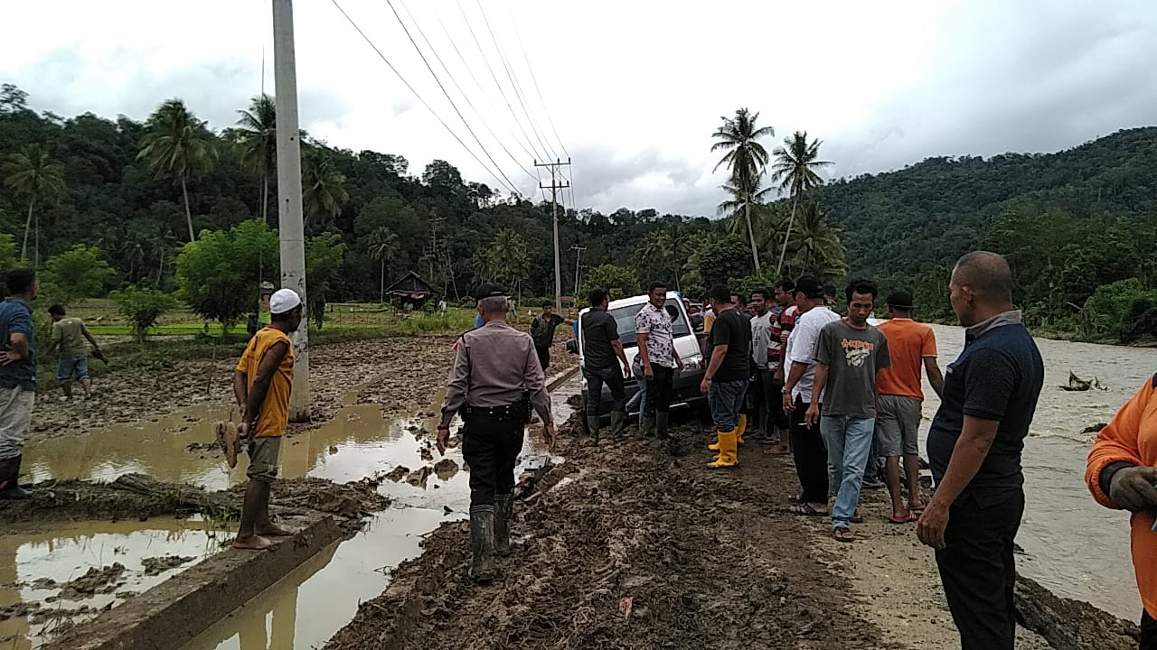 Dikomandoi Bupati Mandailing Natal Drs. Dahlan Hasan Nasution, dan  dibantu warga sekitar, dua alat berat milik Pemerintah Daerah terus bekerja melakukan penimbunan badan jalan yang tergerus air sungai dan melebarkan jalan ke bagian kanan arah dari Panyabungan.