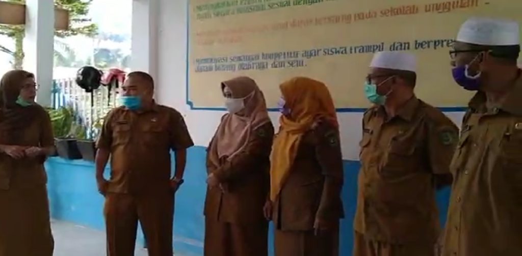 Kadis Pendidikan Madina, Jamilah, SH, didampingi Kadis Kesehatan, dr. Syarifuddin bersama rombongan, Selasa (7/7) mengunjungi SMP Negeri 1 Panyabungan, TK Model Negeri Panyabungan dan SDN 080 Kotasiantar. Dalam kunjungan tersebut sekolah terlihat sudah menyiapkan hal-hal yang dibutuhkan dalam menyambut new normal seperti masker, tempat cuci tangan, pengukur suhu tubuh dan ruang belajar yang didesain mengikuti social distancing.