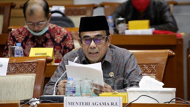 Foto: Menteri Agama Fachrul Razi saat mengikuti rapat kerja dengan Komisi VIII DPR RI di Kompleks Parlemen Senayan, Jakarta, Kamis, 18 Juni 2020.