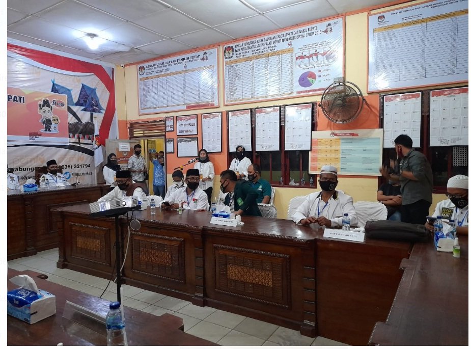 Sampai di kantor KPU Madina, Jakfar dan Atika langsung diarahkan untuk masuk ke dalam kantor KPU setelah sebelumnya dilakukan pengukuran suhu tubuh dan menggunakan hand sanitizer sebagai bagian dari standar pencegahan Covid-19 dan pelaksanaan protokol kesehatan.