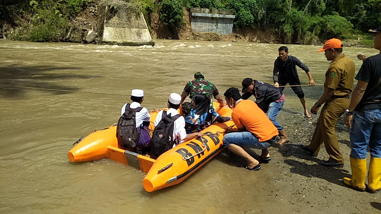 Tambangan.StArtNews- Pasca jatuhnya dua jembatan yang menghubungkan Laru – Tambangan Kecamatan  Tambangan Kabupaten Mandailing Natal, Jumat malam lalu Badan Penanggulangan Bencana Daerah ( BPBD)  menyiapkan perahut karet untuk penyeberangan warga.