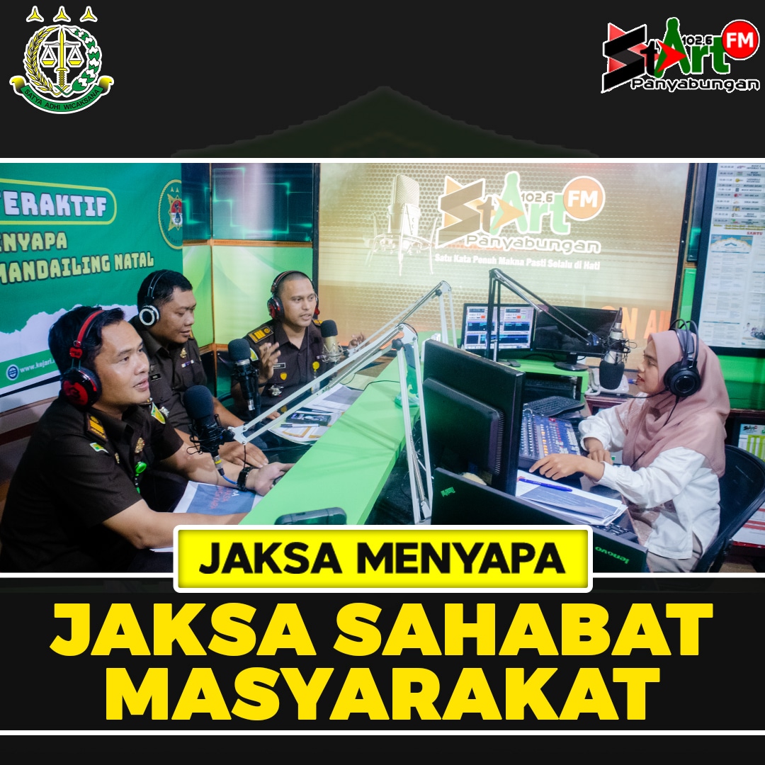 Jaksa Menyapa Bersama Cabang Kejaksaan Negeri Mandailing Natal dengan tema: “Jaksa Sahabat Masyarakat” Dialog Interaktif merupakan bagian dari program acara sesuai visi Radio StArt FM cerdas dan berintegritas. Dialog untuk menambahkan wawasan dan menyebarkan informasi kepada masyarakat terkait program kerja dan perencanaan dari dinas, badan, institusi atau lembaga terkait.