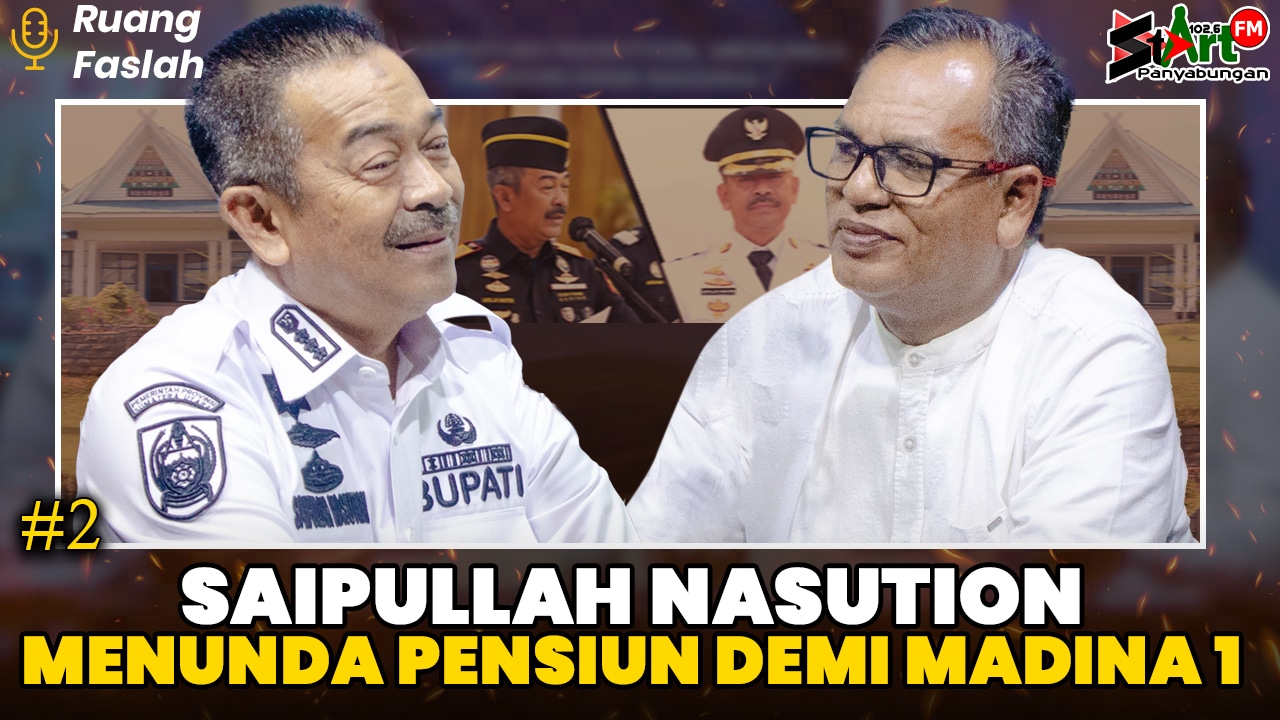 Program Acara Talkshow Eksklusif Radio StArt 102.6 FM kembali hadir Live di frekuensi 102.6 FM dan tayang di channel YouTube StArtFMNews secara exclusive, RUANG FASLAH mengungkap cerita dibalik berita. Kali ini dengan Narasumber Bupati Mandailing Natal H. Saipullah Nasution, SH MM dengan tema: “Menunda Pensiun Demi Madina 1”