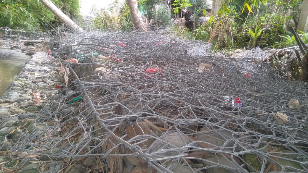Untuk pemasangan pun demikian. Pemasangan bantalan untuk pondasi beronjong terlihat tidak terpasang dengan baik.