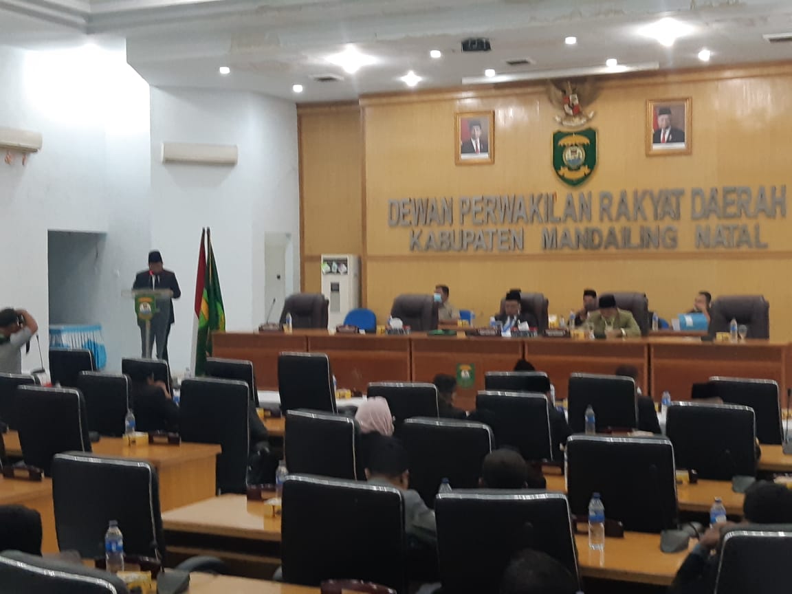 Hal ini disampaikan Bupati Mandailing Natal (Madina), Drs. H. Dahlan Hasan Nasution dalam rapat paripurna Laporan Pertanggungjawaban Pelaksanaan APBD (LPPA) Tahun Anggaran 2019 dengan agenda Penyampaian Nota Jawaban Atas Pandangan Umum Fraksi Babak Pertama DRPD Madina, Senin malam (24/08).