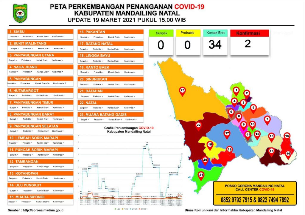 Hal itu terlihat pada update informasi perkembangan penanganan Covid-19 di Mandailing Natal pada laman www.corona.madina.go.id.