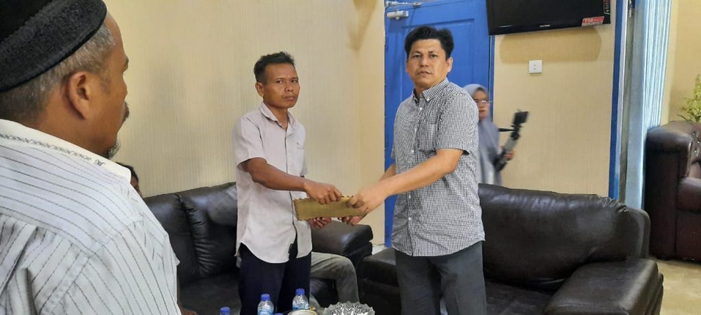 Foto: Warga Aek Banir Menyerahkan Surat Permohonan Pencopotan Kepala Desa kepada Anggpta DPRD Madina, Sobir Lubis.