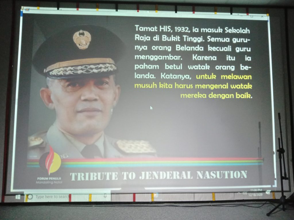 Panyabungan, StArtNews-Forum Penulis Mandailing Natal (FPM) akan menggelar Tribute to Jenderal Nasution sebagai upaya mengenang jejak perjuangan Jenderal Abdul Haris Nasution pada Minggu 20 Desember 2020.