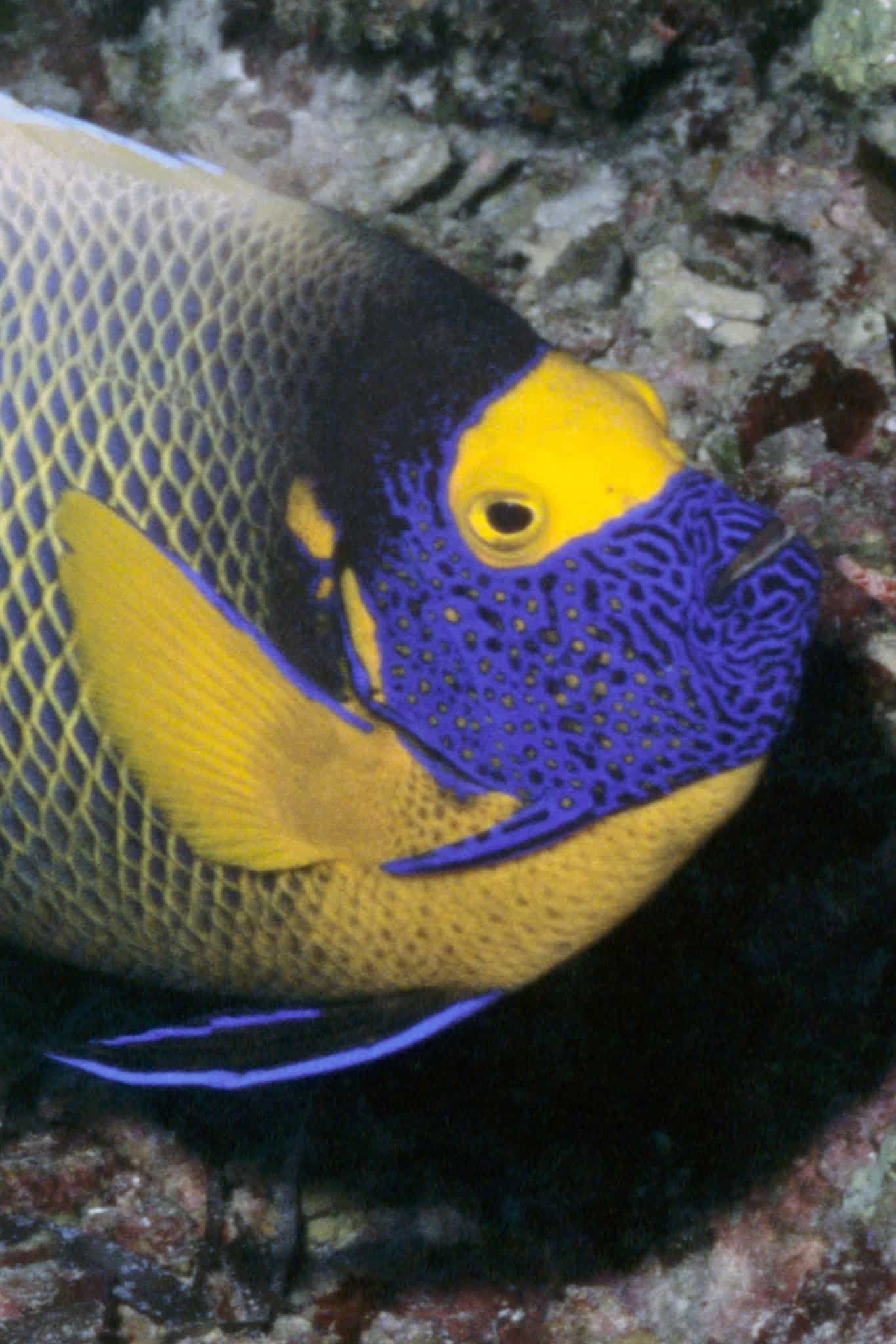 Yelow-Mask Angelfish close-up (Pomacanthus xanthometopon) Palau, Micronesia